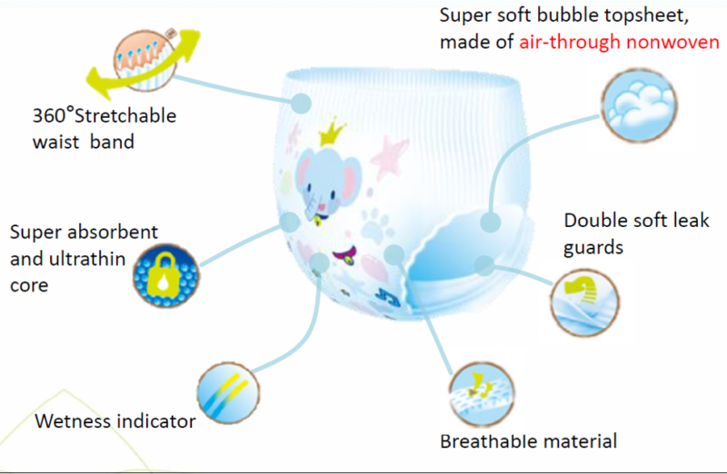 The cloth-like back sheet adds extra comfort, and the product is dermatologically tested, containing no chlorine bleaching, perfume, parabens, or latex. Elibell Premium Baby Pants offer safety, comfort, and peace of mind for you and your baby.