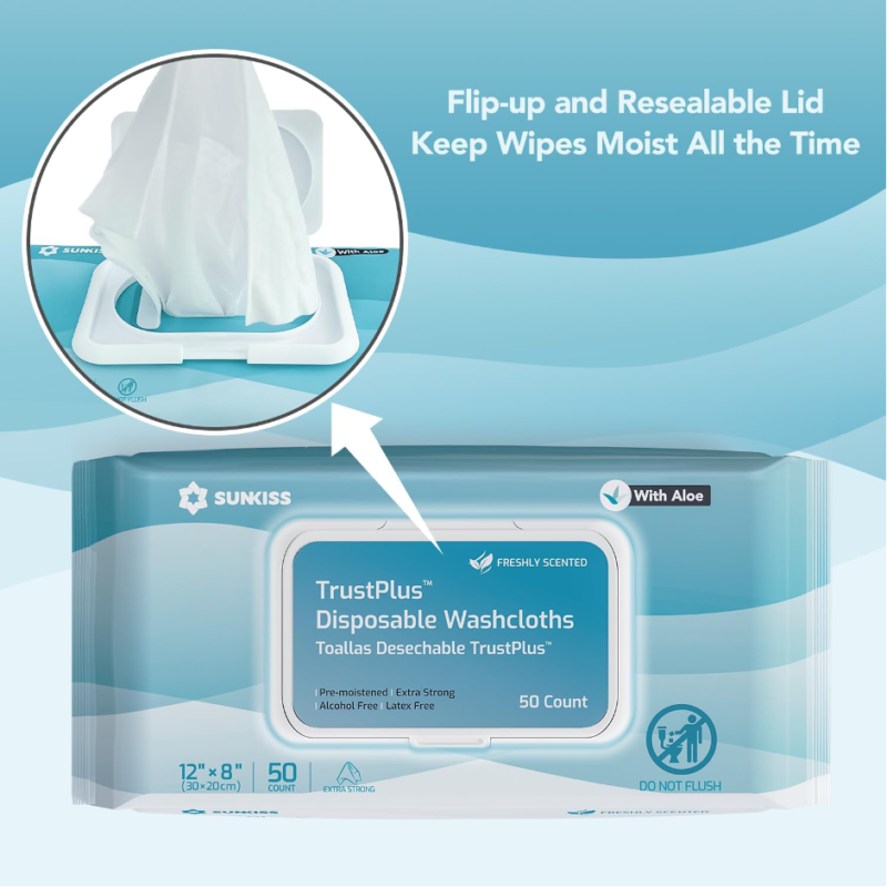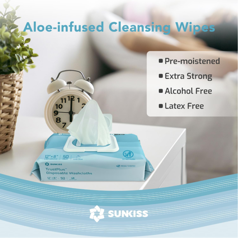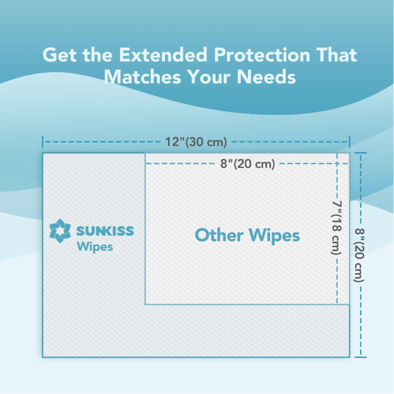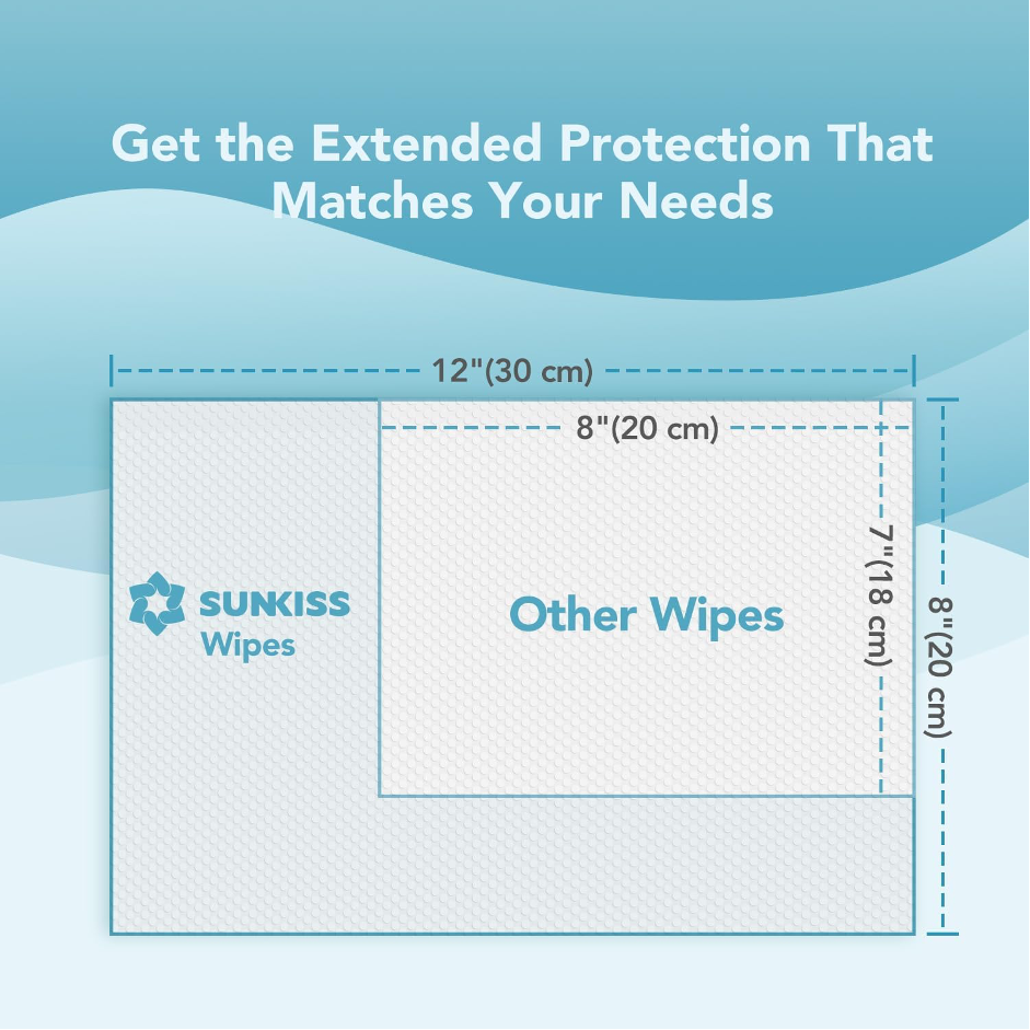 - SUNKISS TrustPlus extra-large (30x20cm), unscented wet wipes are expertly designed to deep cleanse any part of your body without causing any discomfort. Each extra-large wipe can cover larger area and holds its shape even after repeated use.