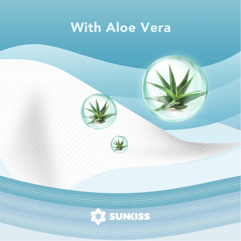- SUNKISS premoistened wipes enriched with aloe vera and vitamin E, delicately cleanse and moisturize the skin. The formula is pH-balanced, fragrance-free, alcohol-free, and is not made with Natural Rubber Latex.